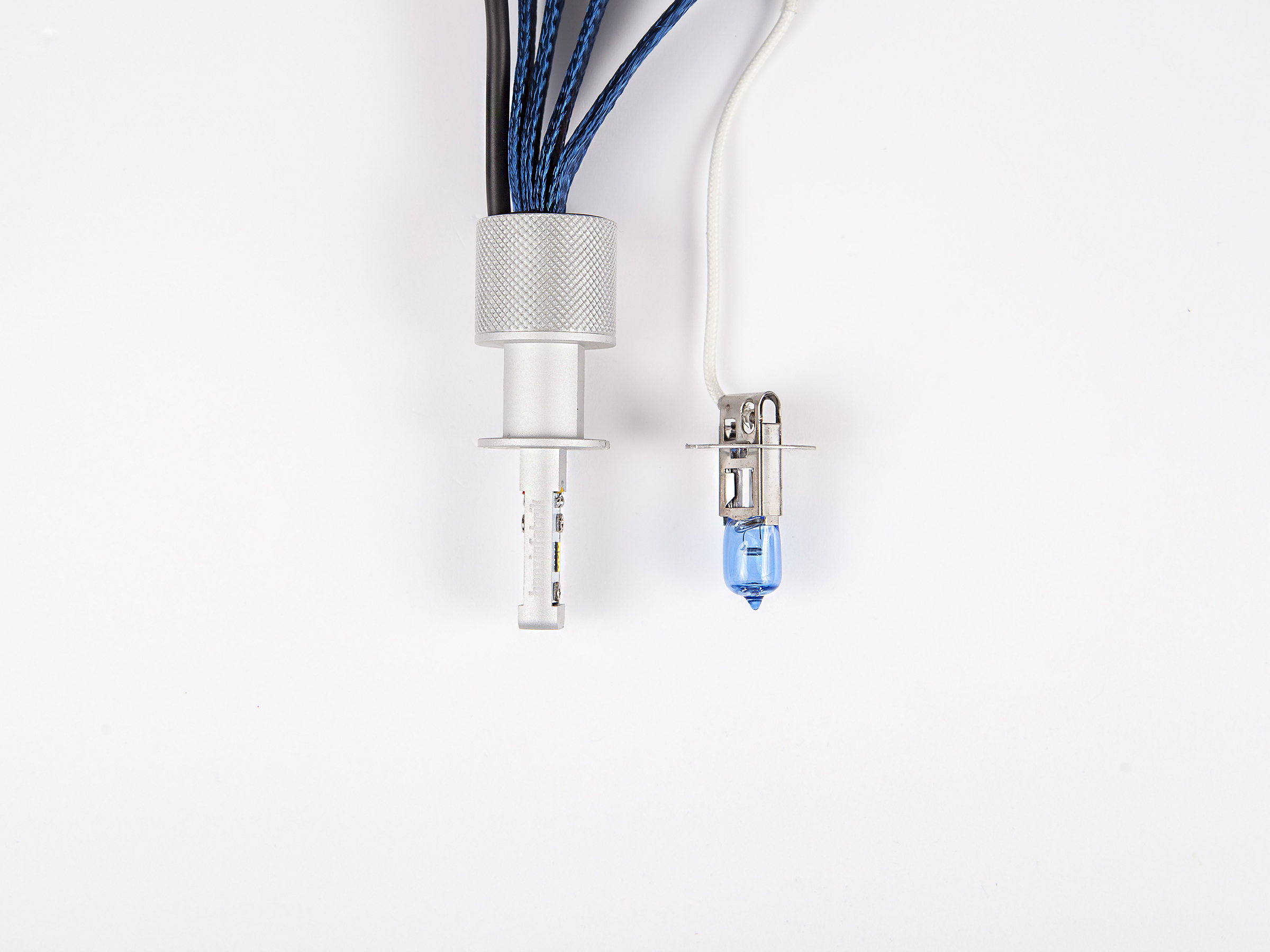 Mit diesem LED Umrüstset V2.1 striped Version wird die original verbauten Glühlampe ersetzt. Originale Halogenlampe haben in der Regel eine kontrastarme Farbtemperatur von 2700 Kelvin. Bei Nachtfahrten ist dieses Licht nicht mehr die ideale zeitgemäße Lösung. Durch den Umbau der originalen Halogenlichtquelle zu dieser LED Lösung lässt sich unkompliziert ein wesentlich besseres Ergebnis erzielen. Wir haben im Frühjahr 2016 die ersten LED Abblendlichtset gelistet, die Resonanz war durchweg positiv, weshalb wir nun hier die überarbeitete Version V2.1 entwickelt haben. In manchen Fahrzeugen waren die Aluminiumkühlkörper zu groß, wodurch es nur mit Anpassungen passte, auch die Kontrolleinheit ist etwas größer, wir konnten die aktuelle wesentlich kompakter gestalten. Desweiteren wurden die Lichtquellen noch genauer auf den originalen Lichtort des Wolframdrahtes abgestimmt, was zu Streuverlusten geführt hat die nun gegen null gehen. Das Ergebnis in der Performance liegt über den bisherigen Set, obwohl wir mit weniger LED Chips arbeiten.