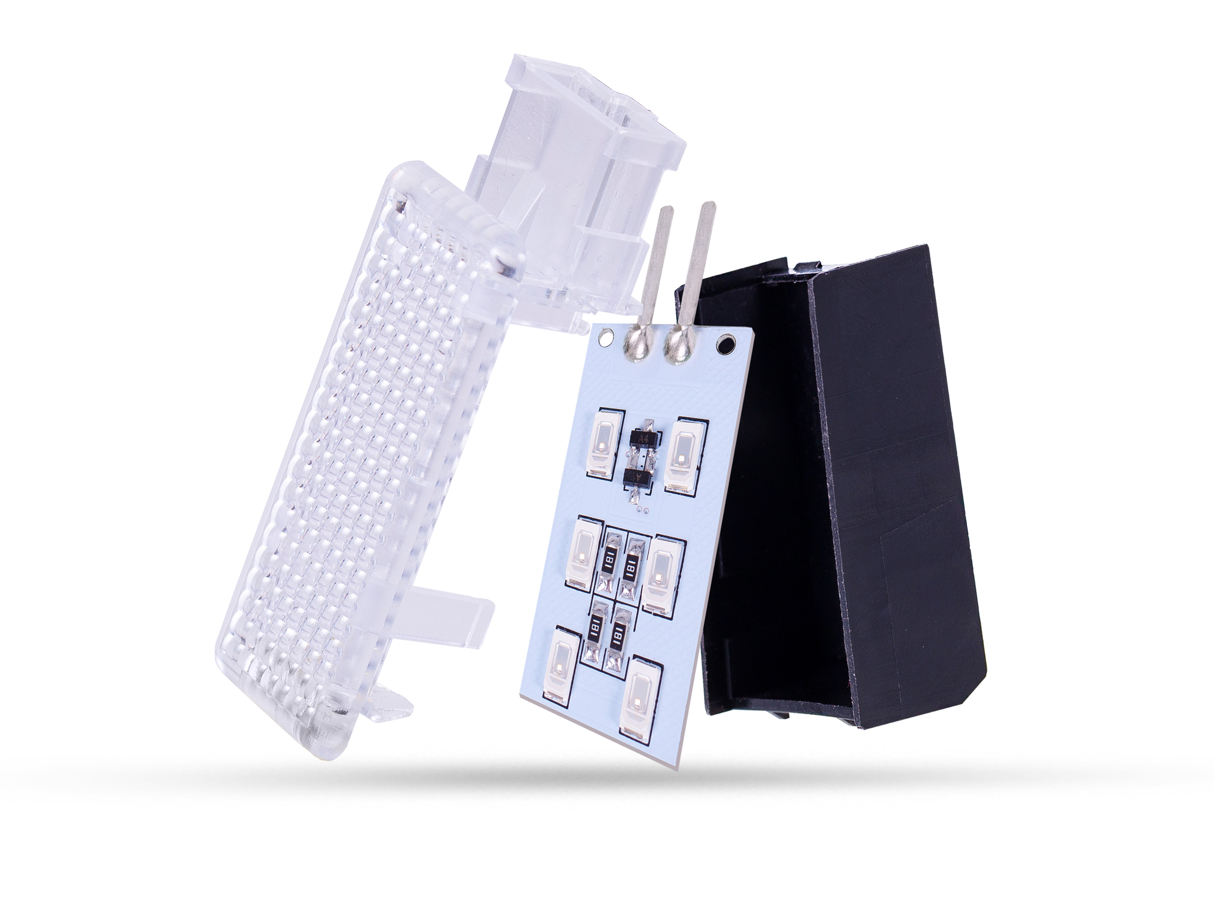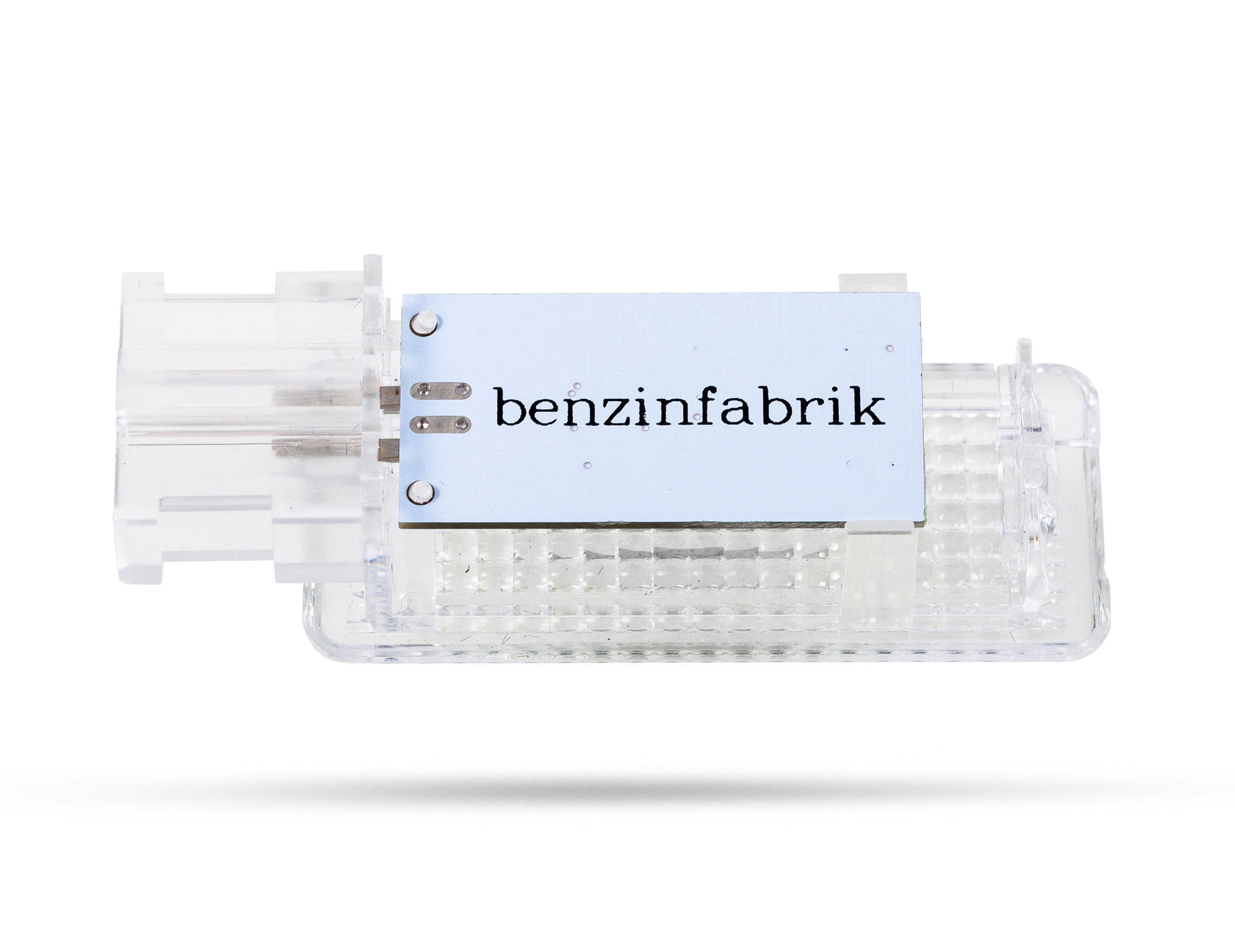 Einfach die Platine des originalen Moduls der Fussraumbeleuchtung entfernen und gegen diese LED Modulplatine tauschen.