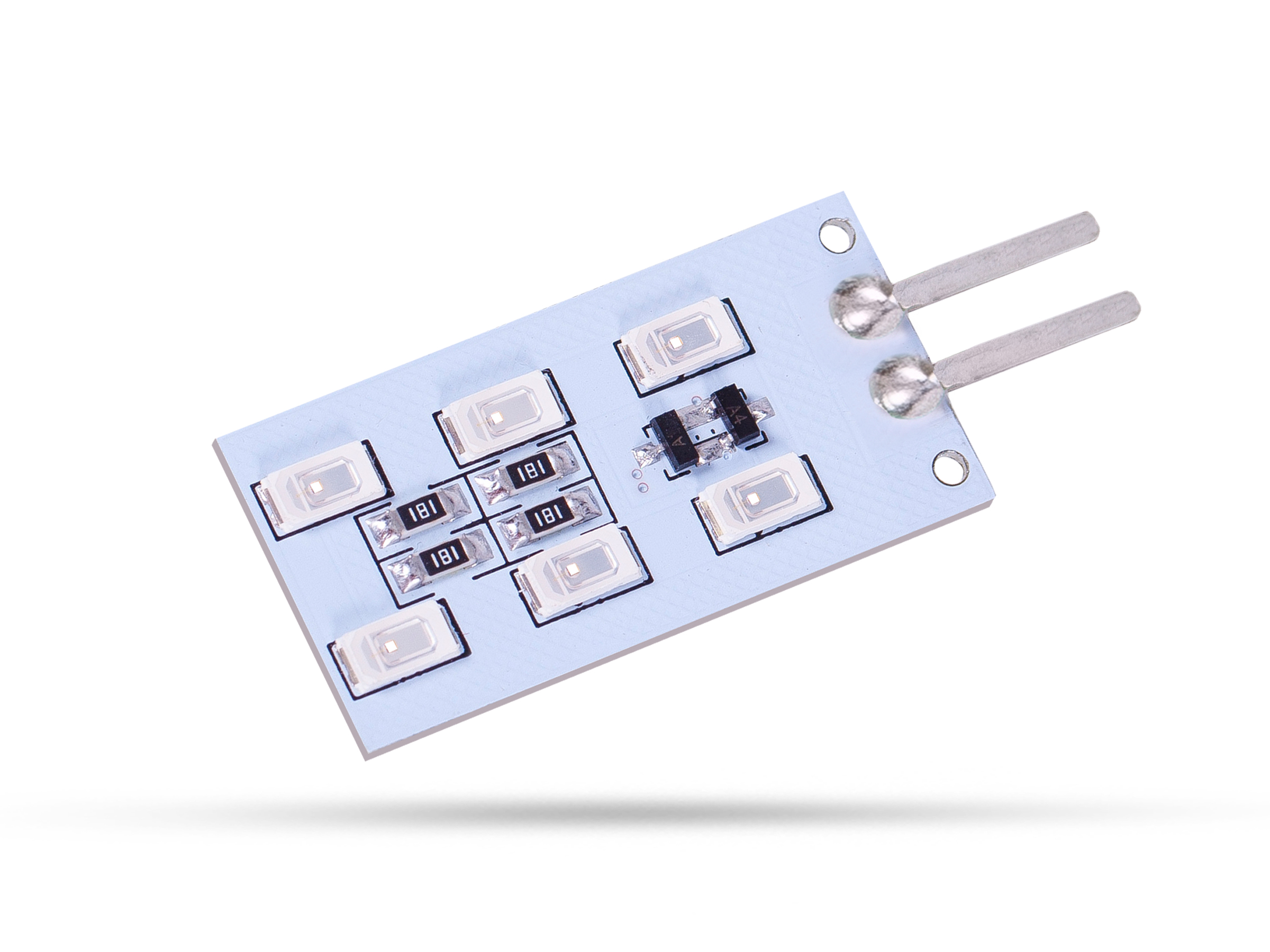 Diese 6x5630 SMD LED Modulplatine erzeugt ein blaues Licht und eine absolut gleichmäßige Ausleuchtung des Fussraumes.