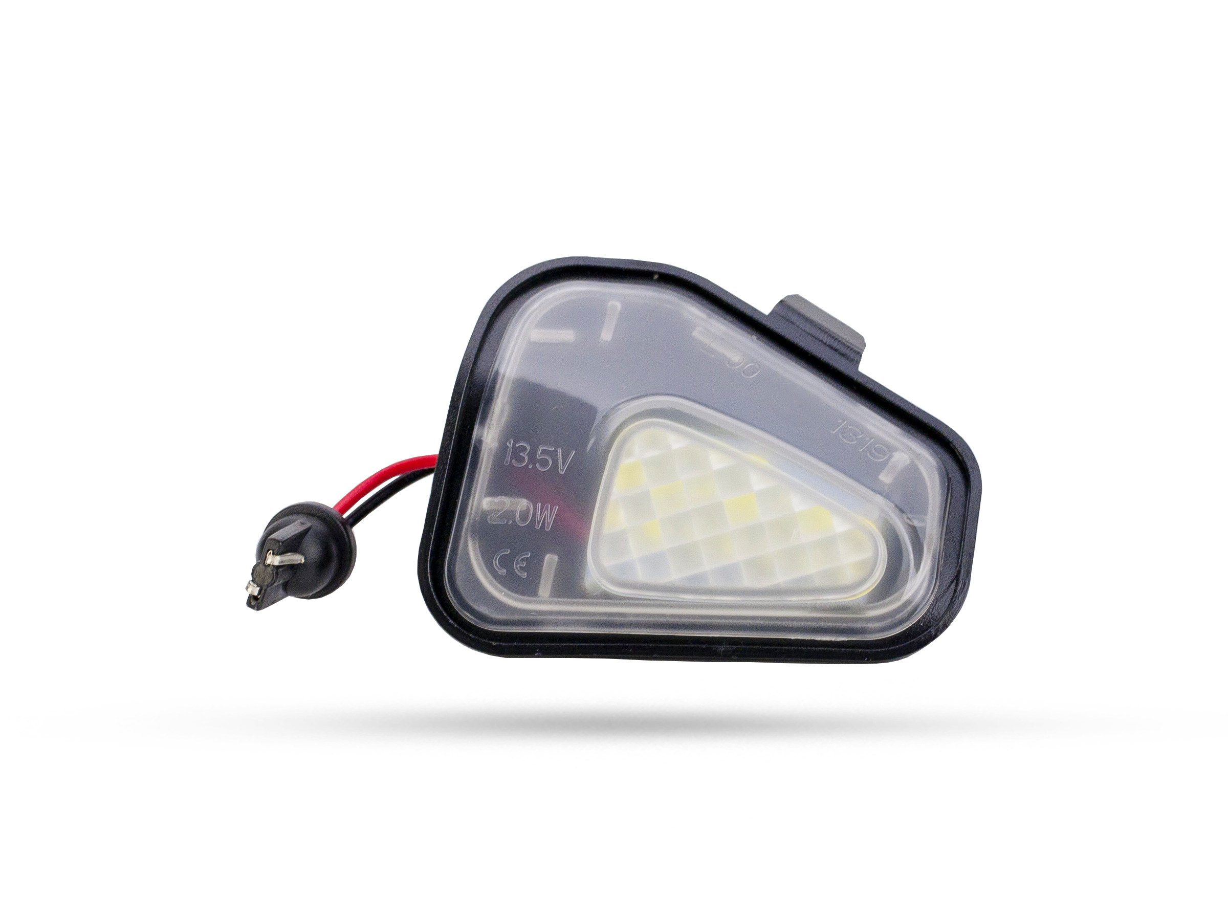 Dieses High Definition LED Tauschmodul ist Fahrzeugspezifisch und wird einfach gegen den original verbauten Lampenträger der Umfeldbeleuchtung (unterhalb der Aussenspiegel) ausgetaucht.