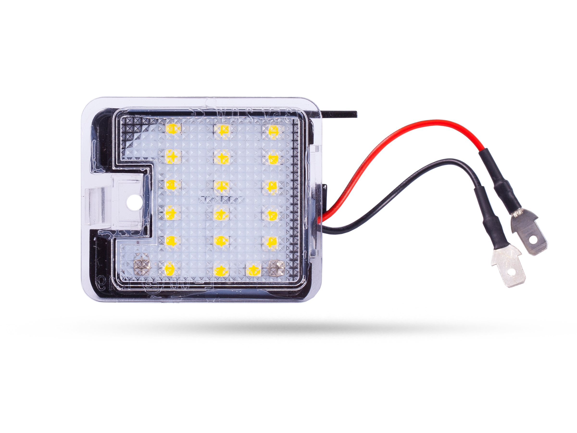 Dieses High Definition LED Tauschmodul ist Fahrzeugspezifisch und wird einfach gegen den original verbauten Lampenträger der Umfeldbeleuchtung (unterhalb der Aussenspiegel) ausgetaucht.