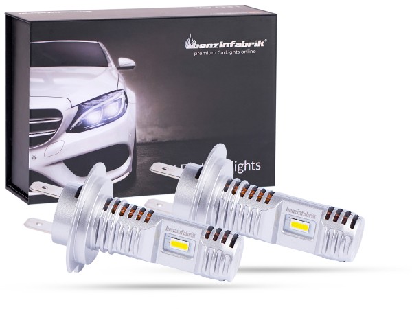 Das LED Scheinwerferset LED H7 compact ist polaritätsabhängig.Daher müssen an o.g. Fahrzeug die Anschlüsse am Stecker vertauscht werden.Belohnt wird man hierfür mit einer Helligkeit die mindestens einer normalen Glühlampe entspricht.Durch die klare Hell-Dunkel Grenze ist eine perfekte Ausleuchtung der Fahrbahn gewährleistet.Desweiteren relativiert sich mittelfristig der Kaufpreis,weil der jährliche Wechsel der defekten Glühlampen entfällt.Alles in einem eine sehr gute Alternative.