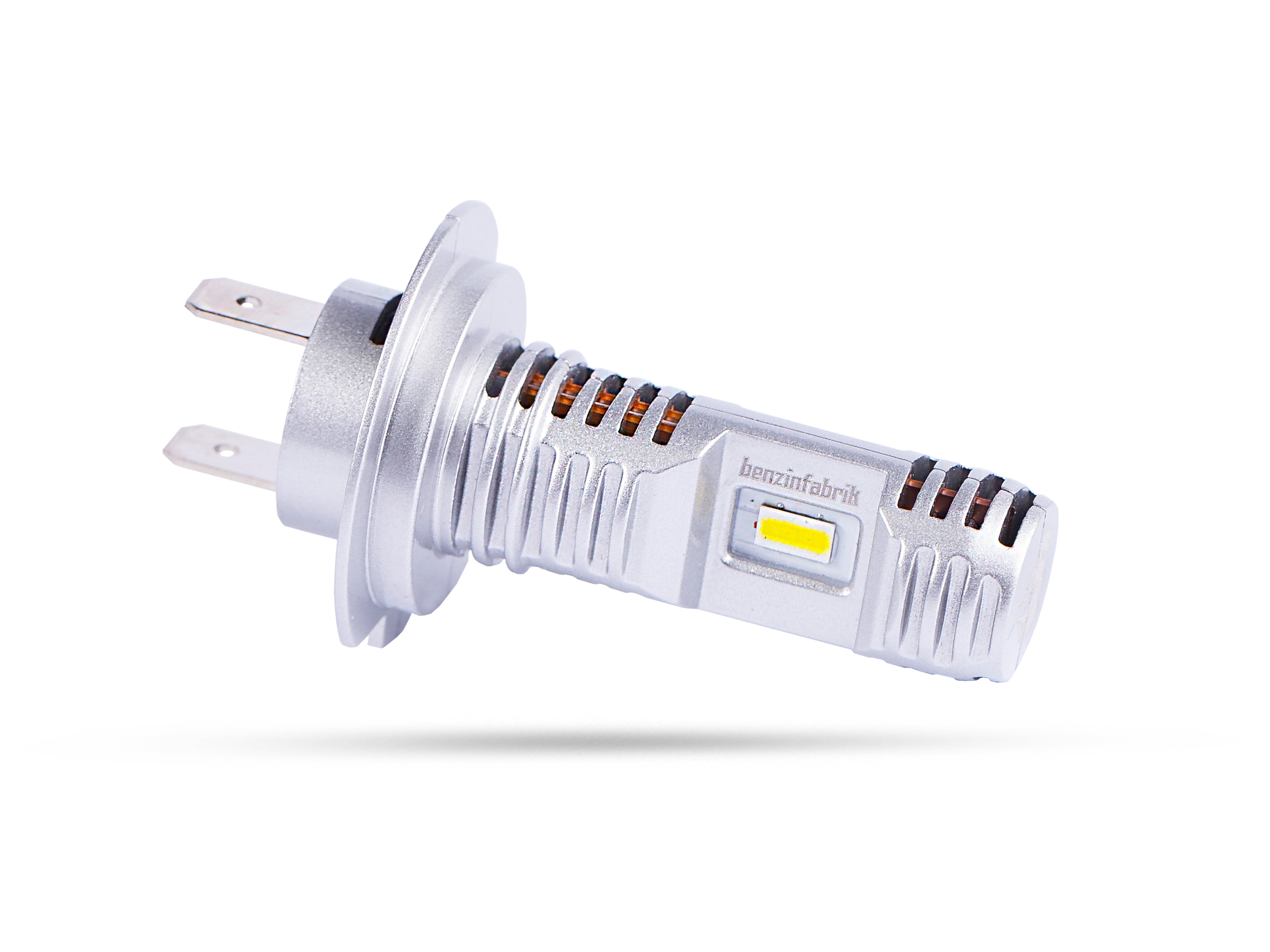 Wir freuen uns unsere nächste LED Scheinwerferserie anbieten zu können. Neben den schon gelisteten Serien haben wir bei dieser Serie das Hauptaugenmerk auf die Bauform geleg. Die Compact Serie baut nicht größer auf als das originale Halogenleuchtmittel (außer bei H1 und H3), was dazu führt das es in der Regel keine bauformbedingten Einbauprobleme geben kann. Die LED Brenner lassen sich so Plug´n Play im Austausch gegen das originale Leuchtmittel verbauen. Aus fällt die Notwendigkeit von seperaten Steuergeräten weg, die Steuerelektronik ließ sich bei dieser Serie vollumfänglich mit auf dem Korpus unterbringen, teilweise auch im inneren des Reflektors, was zu weiterer Platzersparnis geführt hat. Trotz der sehr kompakten Bauform erzeugt diese Serie eine Lichtleistung von 1500 Lumen, was neben der farblichen Anpassung auch zu einer Lichtleistungssteigerung im Vergleich zu der originalen Halogenlampe führt.
