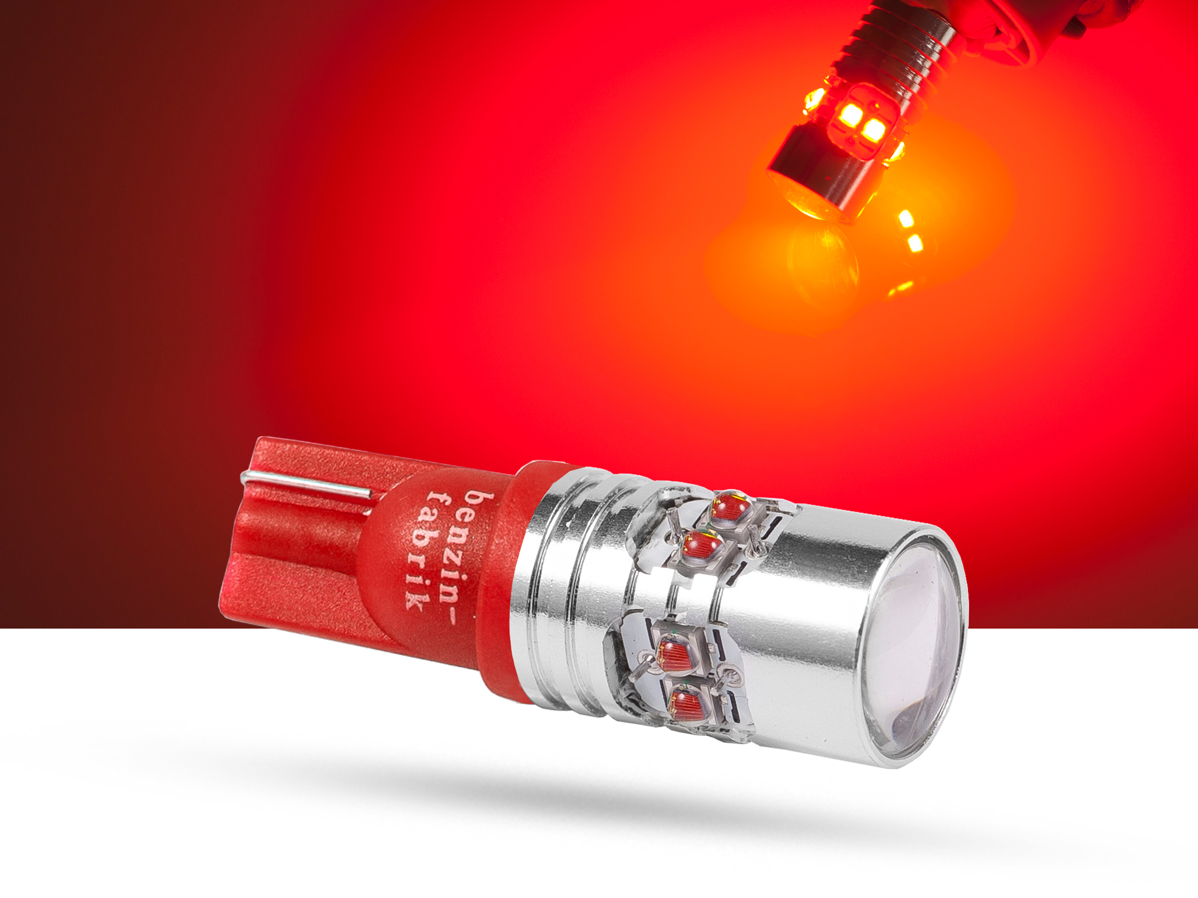 Durch die Anordnung der acht Chips außen und der zwei Chips auf dem LED Kopf, ist ein sehr homogenes Abstrahlverhalten gewährleistet. Dieses LED Leuchtmittel kann in nahezu jedem Reflektor ein perfektes Lichtergebnis erzielen. Sie eignen sich zum Beispiel ideal als Tagfahrlicht oder Rückfahrscheinwerfer für Offroad- und Rennsportzwecke.